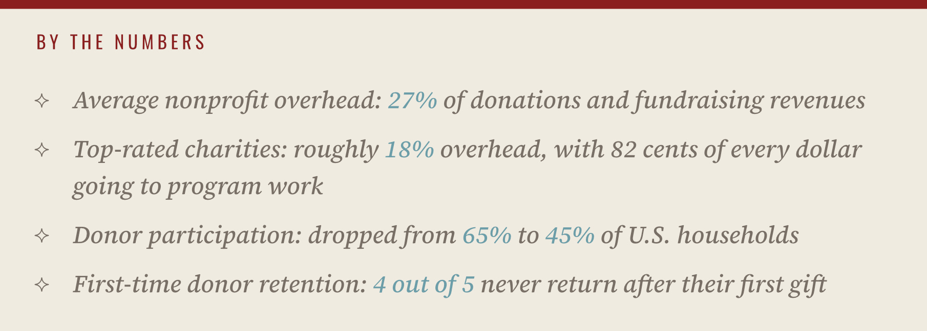 Charity Navigator removed the administrative expense ratio from its rating system in 2023. They acknowledged what people inside the nonprofit sector have known for years: obsession with keeping overhead low creates unsustainable organizations.